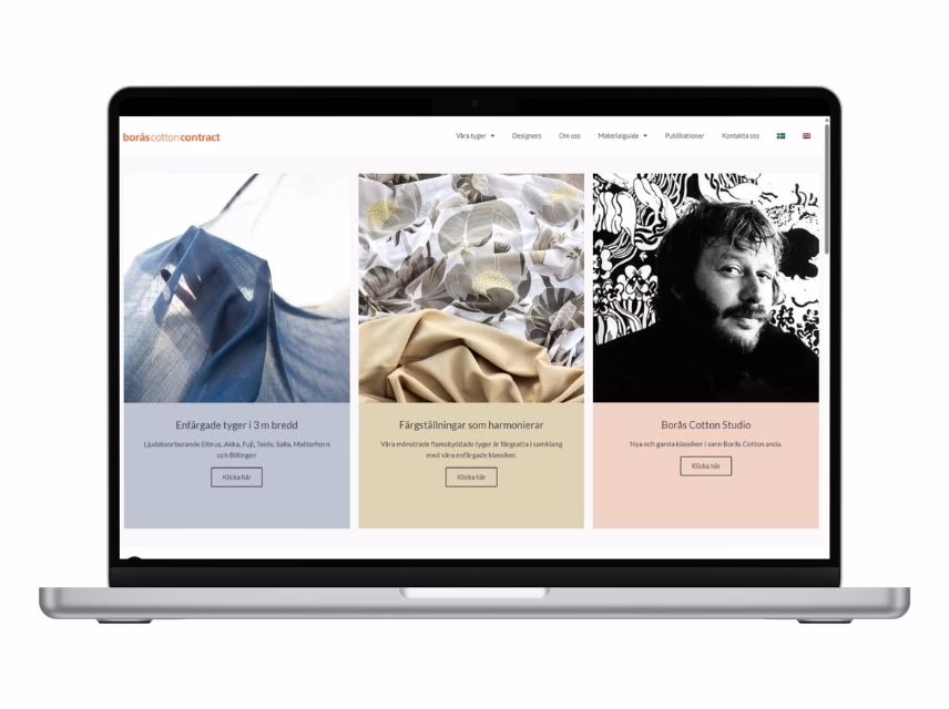Borås Cotton behövde en användarvänlig webbplats där kunder enkelt kunde titta på deras breda sortiment av tyger, samt förbättrad synlighet på sökmotorer.